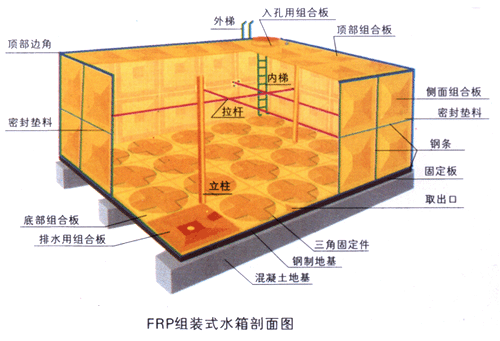 SMC組合式玻璃鋼水箱 SMC組合式水箱是目前國際上采用的新型水箱。由整體優(yōu)質(zhì)的smc水箱板拼裝而成。其特點是采用食品級樹脂,因此水質(zhì)好,清潔無污染;具有強度高,重量輕,耐腐蝕,外型美觀,使用壽命長,保養(yǎng)管理方便等特點。